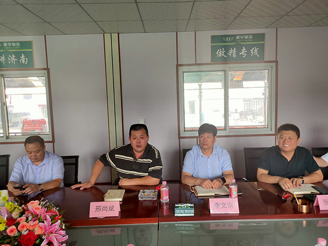 2020年8月10日,濟(jì)南市公安局物流寄遞保衛(wèi)支隊(duì)黨委書記、支隊(duì)長單金文、政委王鋒、紀(jì)委書記樊延海等一行到振宇物流慰問指導(dǎo)工作,濟(jì)南市物流發(fā)展促進(jìn)會(huì)會(huì)長邢尚斌、副會(huì)長李文宗、秘書長杜兆偉等陪同參加。