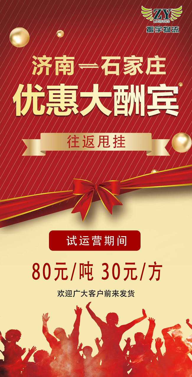 熱烈祝賀振宇物流9.13號(hào)開(kāi)通濟(jì)南到石家莊專(zhuān)線!往返甩掛,優(yōu)惠多多!