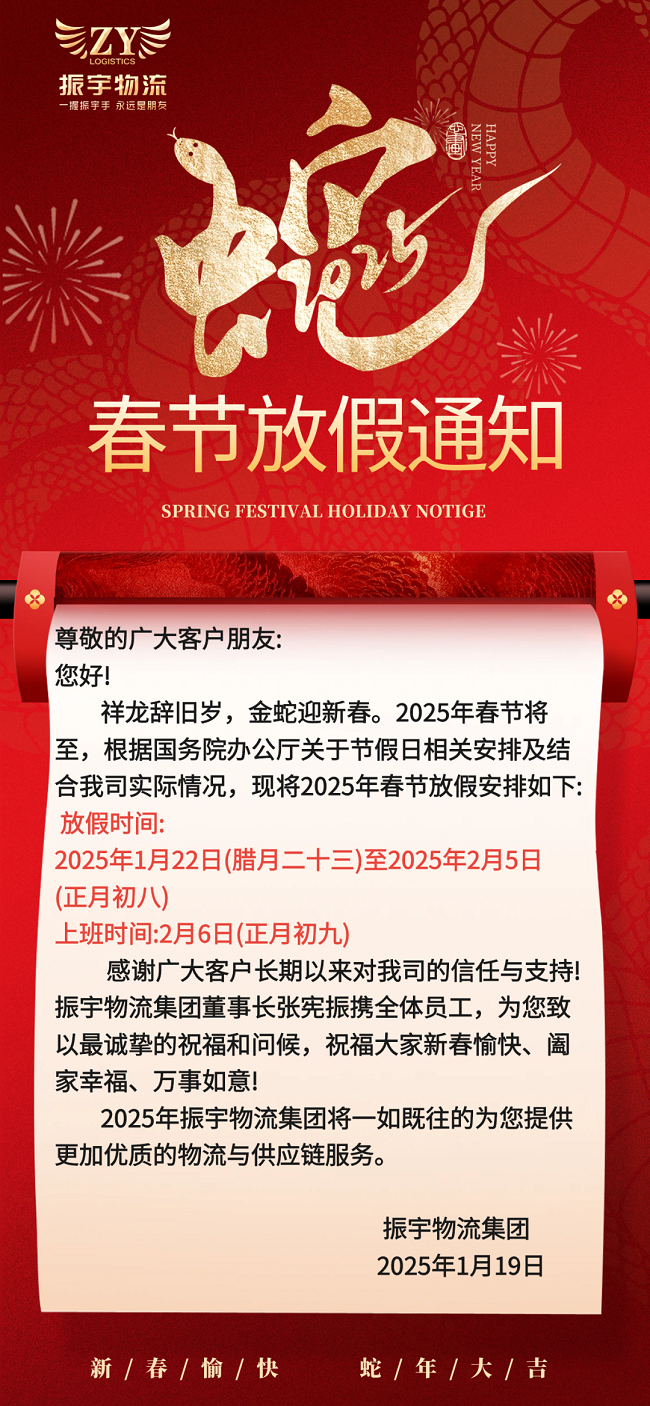 2025年振宇物流集團將一如既往的為您提供更加優(yōu)質的物流與供應鏈服務。