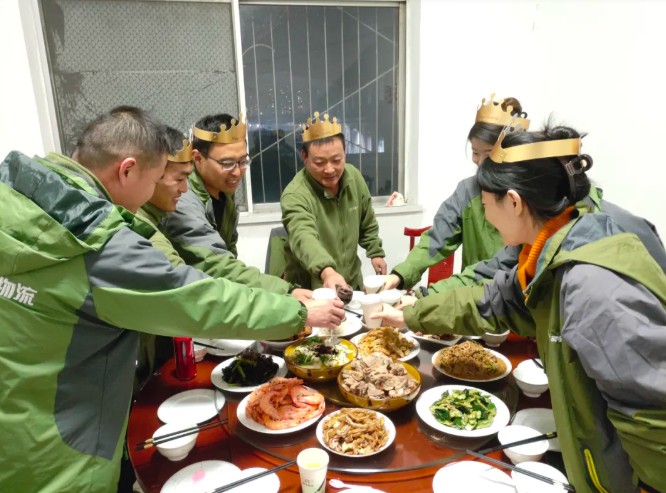 夜幕降臨,溫馨的氛圍延續(xù)到餐桌之上。熱氣騰騰的佳肴陸續(xù)上桌,大家圍坐一堂,暢談工作與生活,分享著彼此的趣事與感悟。推杯換盞間,清脆的碰杯聲交織著歡聲笑語,既是對(duì)過往并肩作戰(zhàn)的感謝,也是對(duì)未來攜手同行的期許。一張張笑臉、一聲聲祝福,匯聚成振宇物流最溫暖的畫面。