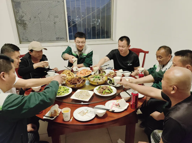 品嘗完蛋糕后,全體家人共享溫馨豐盛的晚餐。餐桌上菜品豐盛、香氣四溢,大家圍坐暢談,分享工作中的感悟、生活中的趣事,平日里并肩奮斗的默契,在此刻化作家人般的親密無(wú)間,輕松愉悅的氛圍彌漫全場(chǎng)。