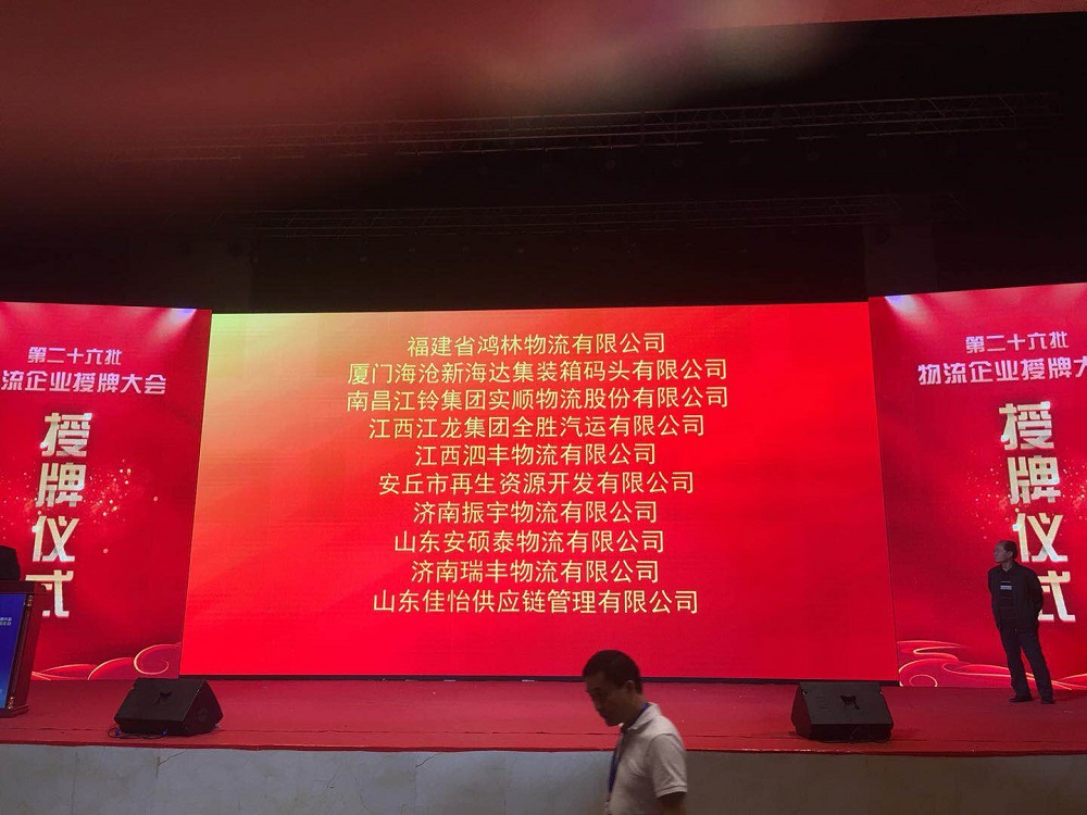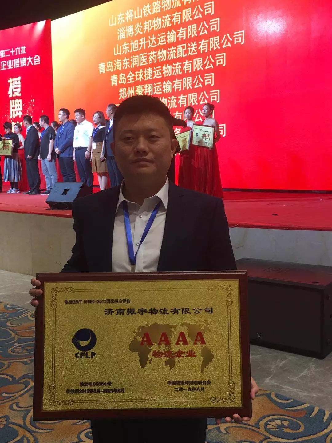 2018年9月16日,由中國物流與采購聯(lián)合會主辦的A級物流企業(yè)授牌大會暨物流業(yè)創(chuàng)新發(fā)展論壇在吉林省長春市隆重舉行。會議對本批A級物流企業(yè)進(jìn)行了集中授牌,濟南振宇物流有限公司榮獲國家AAAA級物流企業(yè),總經(jīng)理張憲振代表公司出席會議并接受授牌。