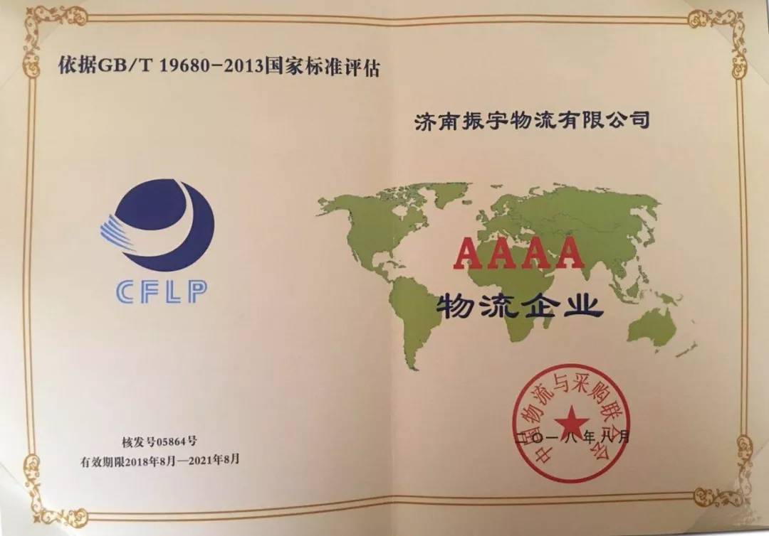 熱烈祝賀濟南振宇物流榮獲國家4A級物流企業(yè)