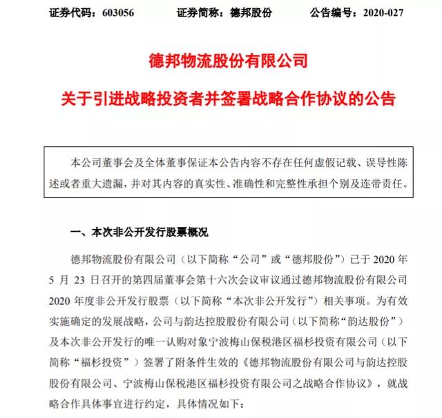 濟(jì)南物流公司:韻達(dá)戰(zhàn)略投資德邦,占股約6.5%,快遞投資并購(gòu)好戲開(kāi)始?