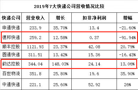 而根據(jù)德邦股份發(fā)布了2019年業(yè)績(jī)報(bào)告,2019年實(shí)現(xiàn)營(yíng)業(yè)收入259.22億元,同比增長(zhǎng)12.58%;實(shí)現(xiàn)歸屬上市公司股東凈利潤(rùn)3.24億元,同比下滑53.82%。扣非凈利潤(rùn)下降-91.94%。在虧損的邊緣徘徊。