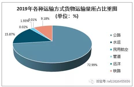 2019年各種運(yùn)輸方式貨物運(yùn)輸量所占比重圖(單位:%)