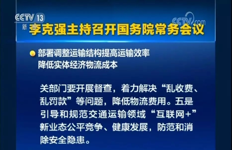 國務(wù)院總理李克強(qiáng)6月27日主持召開國務(wù)院常務(wù)會議,聽取深入推進(jìn)“互聯(lián)網(wǎng)+農(nóng)業(yè)”促進(jìn)農(nóng)村一二三產(chǎn)業(yè)融合發(fā)展情況匯報;部署調(diào)整運輸結(jié)構(gòu)提高運輸效率,降低實體經(jīng)濟(jì)物流成本。會議指出,調(diào)整運輸結(jié)構(gòu)、提高綜合運輸效率,降低全社會物流成本,對提升實體經(jīng)濟(jì)競爭力至關(guān)重要。