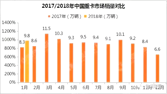 據(jù)統(tǒng)計(jì)數(shù)據(jù)顯示,自2016年10月開始延續(xù)至2017年10月,國內(nèi)重卡市場連續(xù)13個(gè)月爆發(fā)式增長!2017年全年,國內(nèi)重型貨車產(chǎn)量為114.97萬輛,同比增長55.07%,銷量為111.69萬輛,同比增長52.38%。而18年1月重卡市場的“開門紅”除了同環(huán)比雙雙增長以外,同時(shí)也打破了去年1月銷量8.3萬輛的紀(jì)錄。