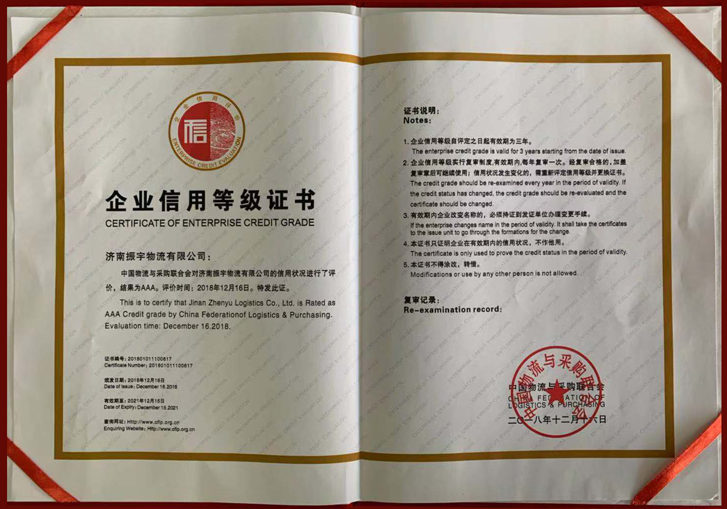 企業(yè)信用等級(jí)證書